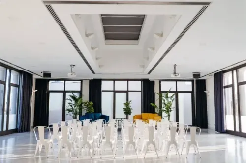 - High-end or specialised venues: High-end or specialised venues that provide top-notch facilities, luxurious settings, comprehensive catering services, and advanced technology could exceed the €500 per hour range. These venues are ideal for workshops that require a premium environment and a range of tailored services.