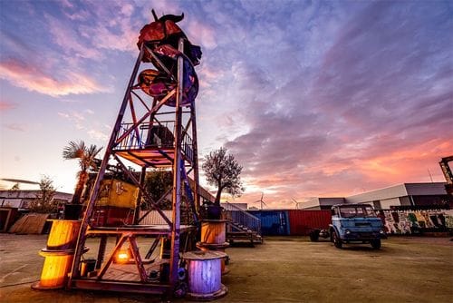 What if your next corporate event could blend the gritty charm of urban art with the unexpected elegance of vintage details? This 2000sqm outdoor venue is a striking fusion of industrial design and artistic rebellion. Towering metal sculptures rise dramaticall... Show More