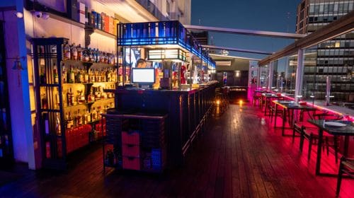 Rooftop With Black Marble Bar and Skyline Views for After-Works
