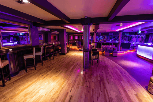 Step into a world of elegance and style at this sophisticated event venue, adorned in striking Art Deco architecture. This nightclub exudes a unique charm with its vibrant purple hues, mood lighting, and polished wooden floors that create an inviting ambiance.... Show More