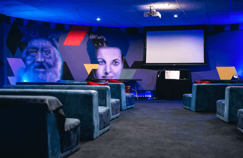 Innovative Event Venue With Large Screen and Comfy Seating