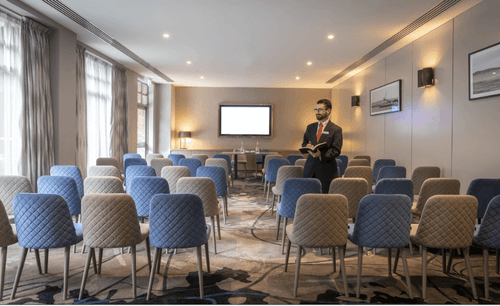Workshop rooms are typically equipped with the essentials to ensure a smooth and productive event. Most have tables and chairs arranged for group collaboration, a whiteboard or flipchart for brainstorming, and a projector or screen for presentations. You'll often find high-speed WiFi, audio-visual equipment such as microphones or speakers, and charging points for devices. Many venues also offer refreshments such as coffee or water; some even offer catering. Depending on the venue, you may also have access to breakout rooms for smaller group discussions or more interactive sessions.