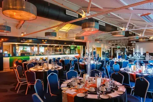 Nestled on the third floor with floor-to-ceiling windows, this space offers breathtaking 180-degree views of Dublin Port. Perfect for corporate events, this versatile venue can accommodate up to 300 delegates and be divided into three separate rooms.Located... Show More