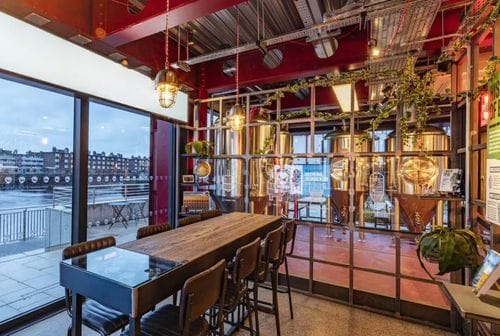 Beer school venue in Dublin's Docklands, part of a three-level complex with bars and outdoor areas, designed for tastings, educational workshops, and team-building activities. The space accommodates up to 16 standing or 10 seated guests and features an... Show More