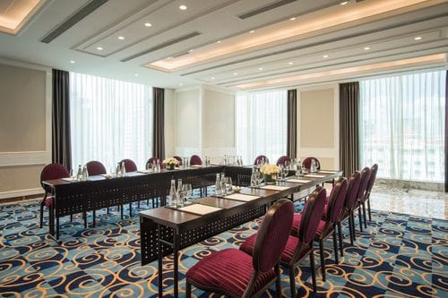 Experience a setting where timeless elegance meets modern functionality. These meeting rooms captivate with white panelled walls adorned with ornate detailing, evoking a sense of classic grandeur. Luxurious soft carpeting enhances the ambience, while expansive... Show More