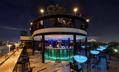 This stylish venue offers stunning panoramic views of Saigon’s skyline from its elevated rooftop location. The unique circular design blends modern architecture with sophistication. A glass-walled balcony surrounds the space, providing guests with an unobstruc... Show More