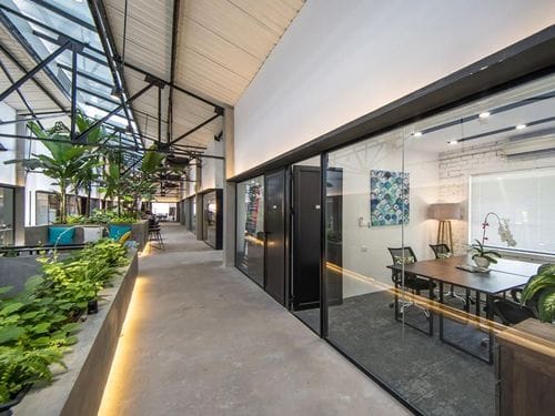 This serviced office offers a captivating blend of modern minimalism and lush greenery, making it a hidden gem within the bustling city. Its architecture showcases contemporary industrial elements, with exposed steel beams and sleek glass doors that invite... Show More