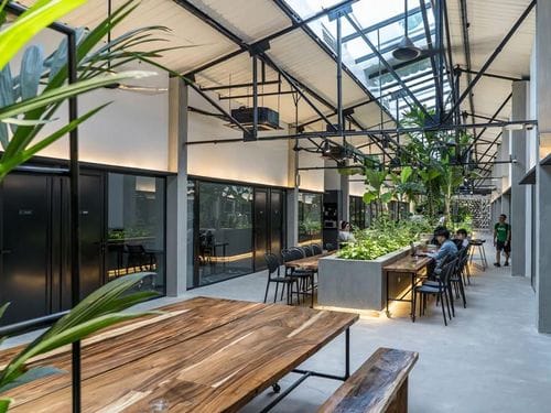 Creative Workshop Hub With Skylit Greenery for Team Offsites