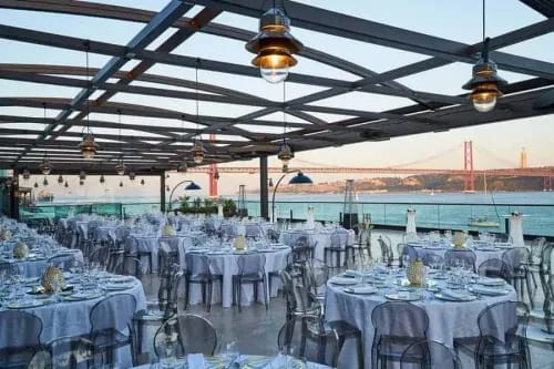 Overlooking the River Tagus is this spacious terrace that treats guests to stunning panoramic views of Lisbon. This outdoor venue also has an inside area with an industrial vibe, so it's the perfect choice whatever the weather!It is a great place for reception... Show More