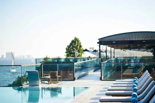 Magical Poolside Lounge With Astonishing River Views for Chic Networking Events