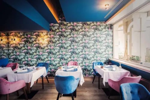 Bold Art Deco Brasserie With Tropical Wallpaper for Stylish Corporate Events