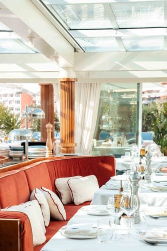 Nestled along Cannes's pristine coastline, this charming venue blends coastal elegance with a cosy and luminous atmosphere. In light earthy tones, the wooden ceiling harmonises with the soft cream and maroon sofas, creating a warm and inviting setting.... Show More