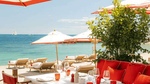 Available year-round, this cocktail lounge is suited for private dinners, brand activations, and intimate soirées. Indoors, rich textures set a cinematic mood; outdoors, guests sip beneath the Riviera sun.Seating configurations shift easily between casual... Show More