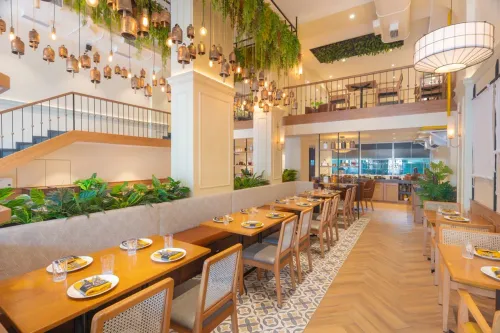 This stylish olive-toned restaurant offers a vibrant and design-led setting for team socials, group dinners, and corporate gatherings. Checkered flooring, central communal tables, and banquette seating create a dynamic layout that encourages interaction and... Show More