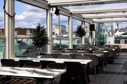 Panoramic Rooftop Terrace With a Bar Lounge for Networking Mixers