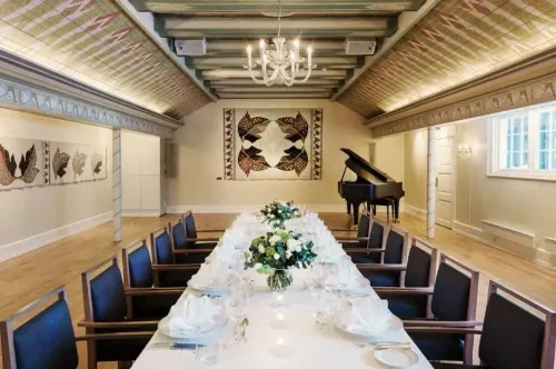 This room offers a stunning blend of historic Nordic architecture and elegant modern functionality, making it the perfect destination for intimate gatherings, conferences, and exclusive celebrations. The space features intricate vaulted ceilings painted with... Show More