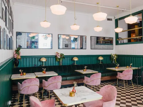 Nestled along the scenic waterfront, this bistro exudes refined elegance combined with a touch of modern eclecticism. Its architectural style is a harmonious blend of contemporary design and timeless sophistication. Floor-to-ceiling windows flood the space... Show More