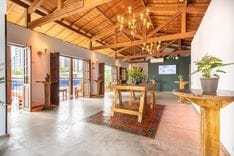 Step into a captivating venue that beautifully blends modern architecture with tropical and Bohemian aesthetics. This space combines Scandinavian and Tropical Modernist design, where clean lines and minimalistic white walls are complemented by lush greenery... Show More
