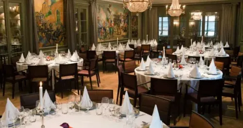 Step into a space where history and sophistication intertwine, offering an elegant Baroque-style venue ideal for intimate corporate events. The room’s ornate ceiling mouldings and a dazzling crystal chandelier create a refined setting, complemented by the... Show More