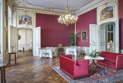 Viennese Rococo Room With Red Damask Walls for Intimate Gatherings